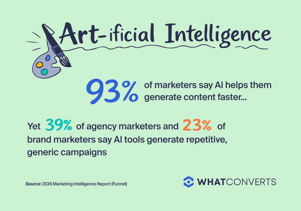 Funnel's 2026 Marketing Intelligence Report shows 39% of agency marketers say AI tools generate repetitive, generic campaigns. When everyone uses the same prompts and models, advertising blurs together.