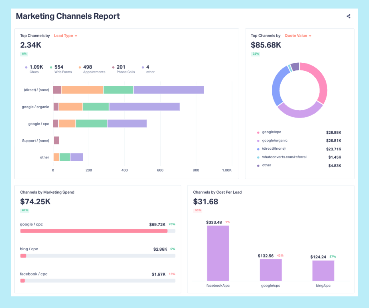 A channel that generates fewer leads might produce significantly more revenue. Another that looks “cheap” on a cost-per-lead basis might quietly drain budget once sales outcomes are considered.