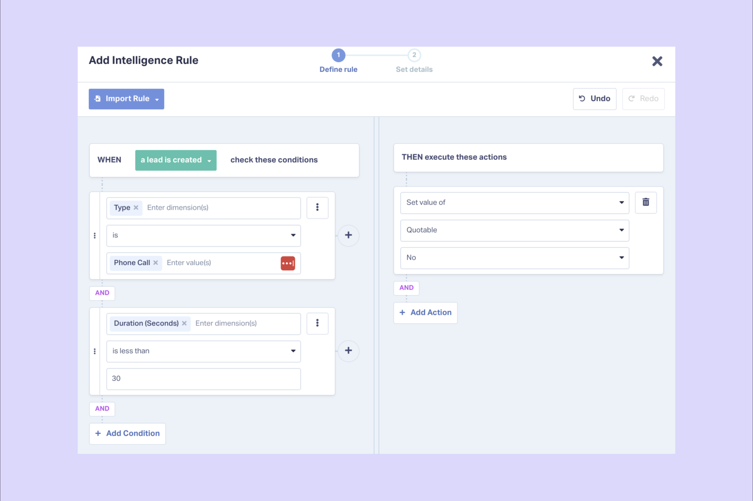 This rule now runs automatically on every incoming call. Leads that don't meet your duration threshold are immediately flagged and excluded from qualified lead counts.