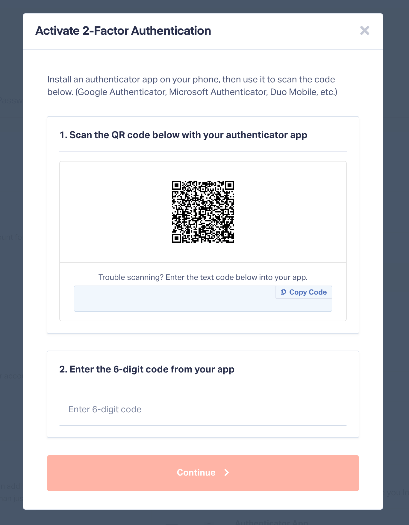 - Scan the QR code with your authenticator app
