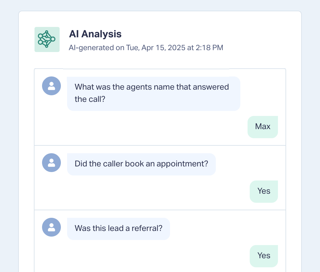Use AI Analysis in WhatConverts to pull this data from every lead and tag them for easy identification and reporting later.