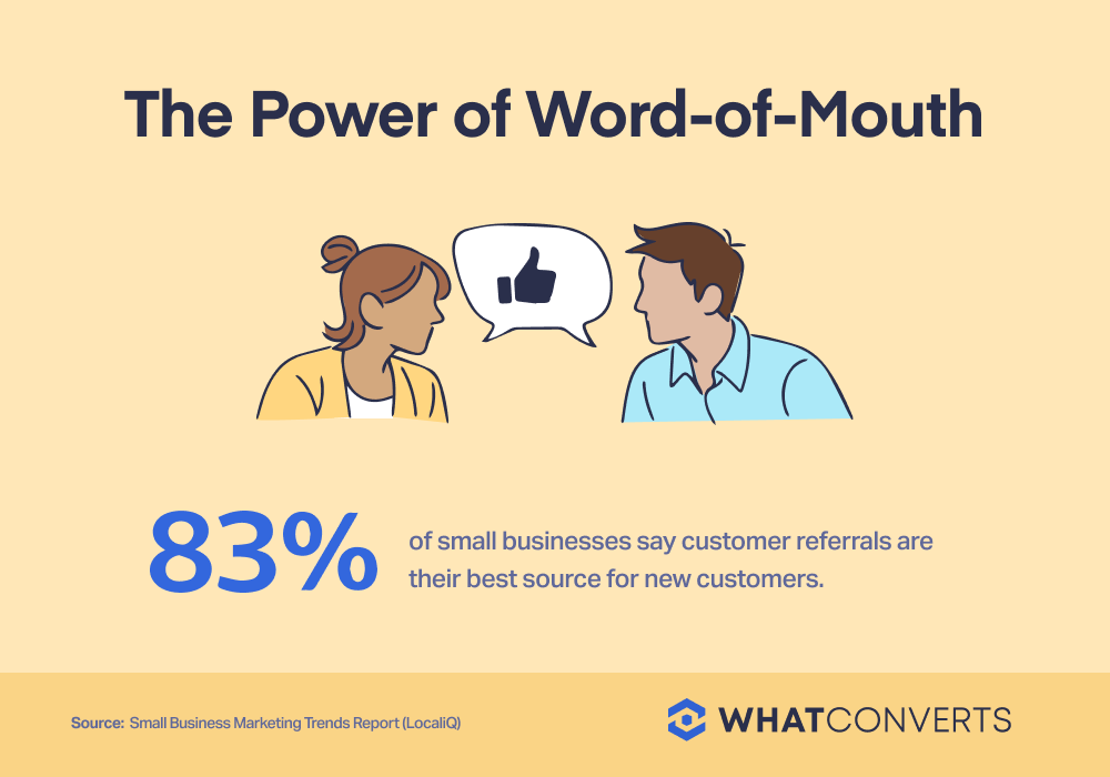 For example, over 80% of small businesses say customer referrals are their best source for new customers—up from 65% last year.