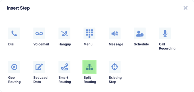 A Split Routing step allows you to distribute incoming calls among different routes based on specific percentages or volume limits. This is ideal for balancing call volume between multiple team members, offices, or third-party call centers.