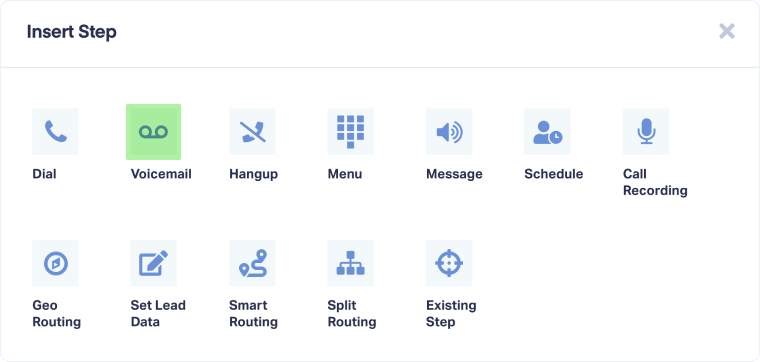 A Voicemail Step in your Call Flows allows callers to record a voicemail message when no one is available to answer. You can configure optional greeting messages, voicemail prompts, beep sounds, and time limits to control how callers leave messages.