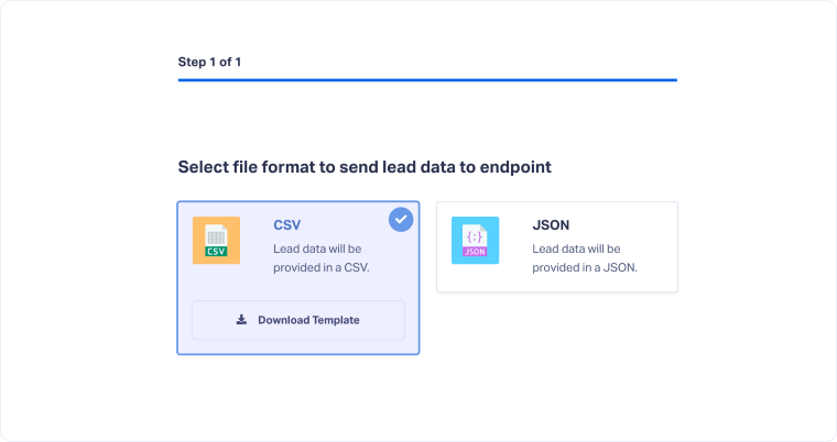 - Click "Add Endpoint" and select your file format (CSV or JSON).