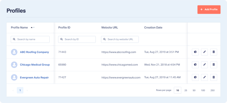 Manage your Profiles to control tracking, integrations, and reporting for each individual business or website within your account.