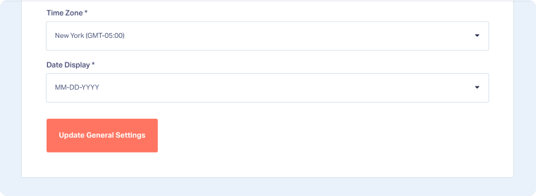 - Under General Settings, in the Time Zone field, choose your preferred time zone.