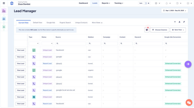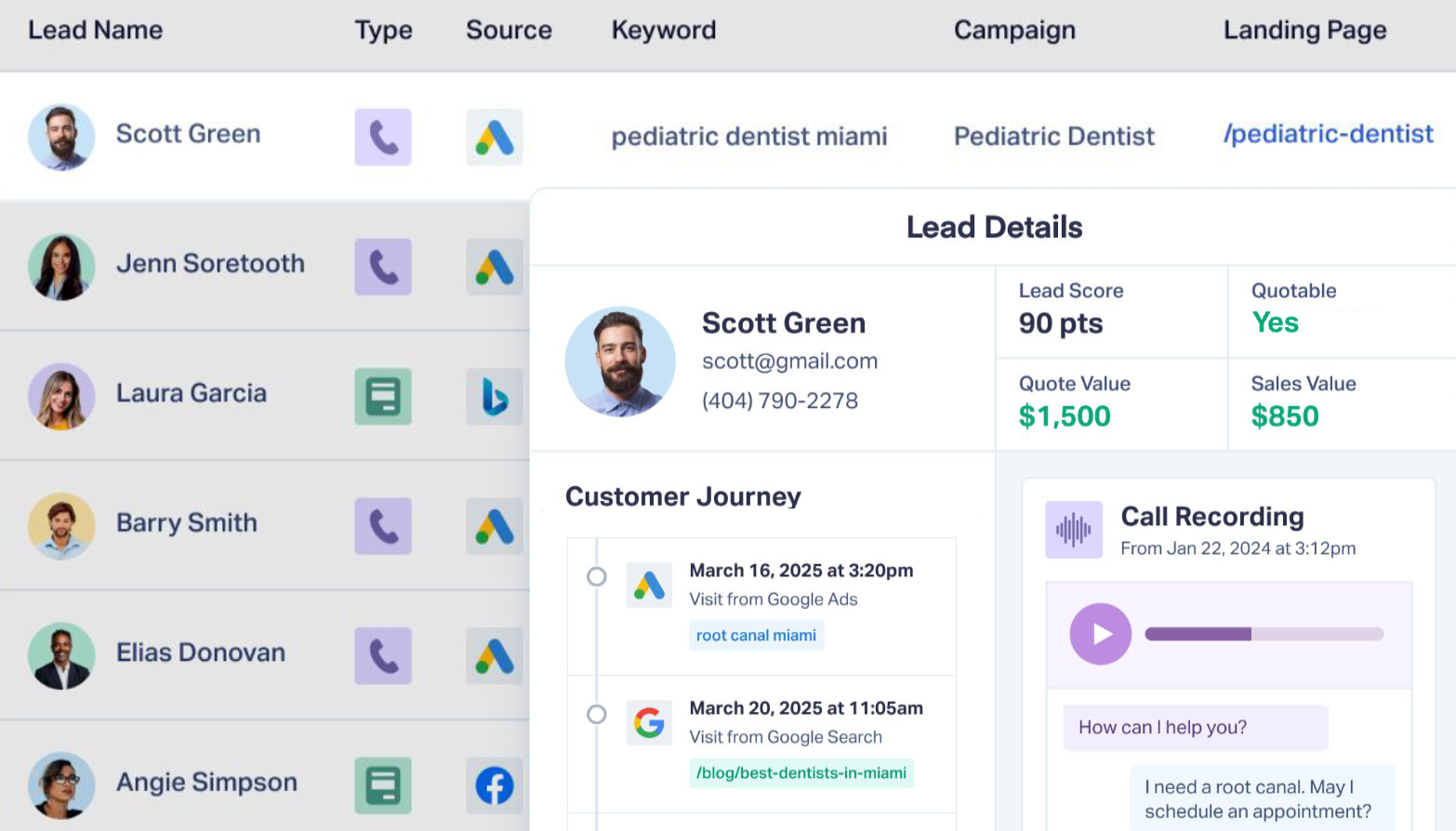 - Sales teams: Capture every call, form, chat, and transaction with attribution data so reps can prioritize follow-up and managers spot missed opportunities.
