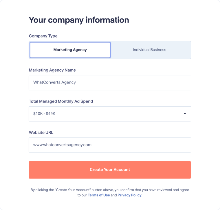 - Select your Company Type: choose Marketing Agency or Individual Business.