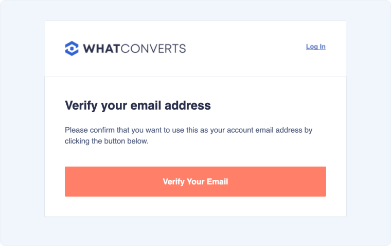WhatConverts will send a verification email to the address you entered. This step ensures your account is secure and ready to use.