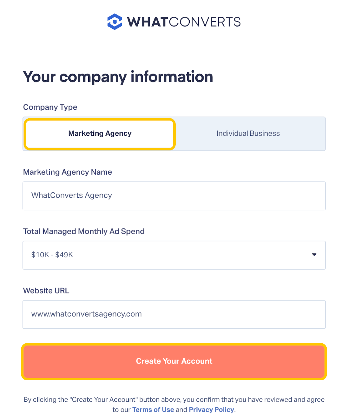 - Select your Company Type: choose Marketing Agency or Individual Business.