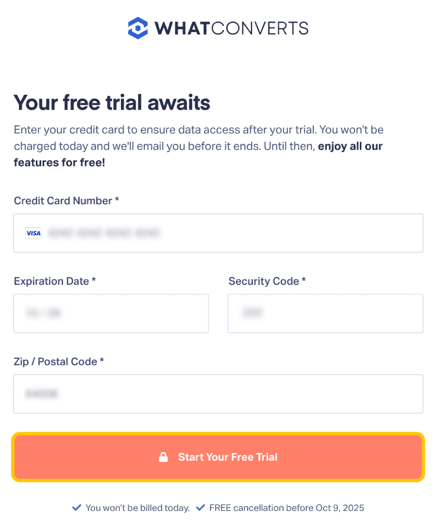 To get started, go to whatconverts.com and click “Try For Free” or open your account directly here.