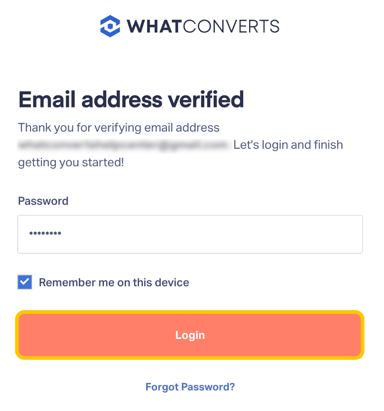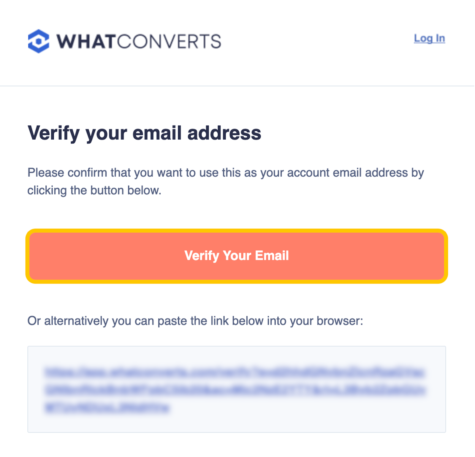 WhatConverts will send a verification email to the address you entered. This step ensures your account is secure and ready to use.