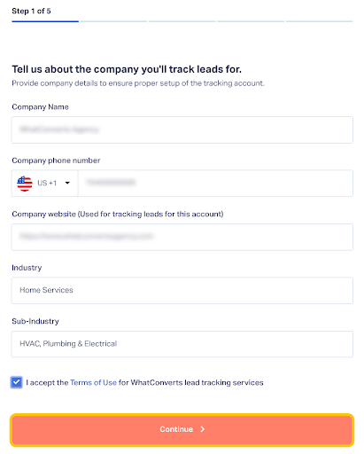 - Confirm the Company Website where leads will be tracked (already pre-filled).