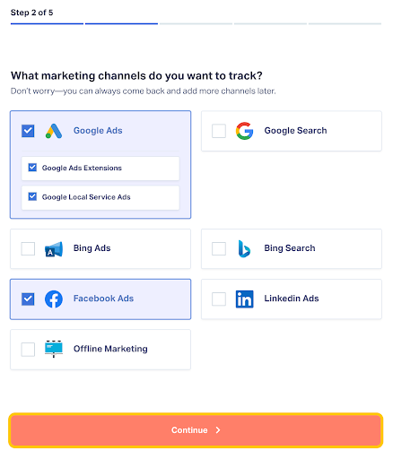 Tell WhatConverts which channels you want to track leads from. This will help us adapt to your tracking needs.