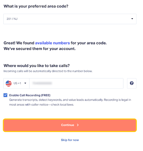 - Enter the Phone Number where calls should be forwarded to (typically the one displayed on your website).