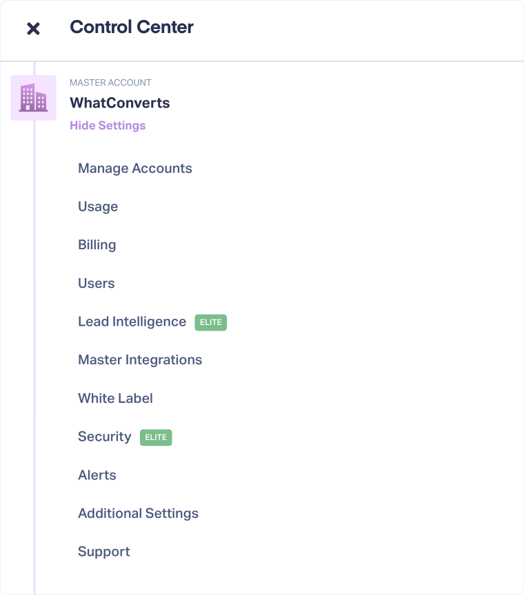 When logging in to your WhatConverts account, you'll be defaulted to the Master Account level if no Account or Profile is selected.