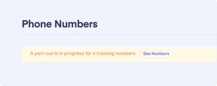 - The numbers will appear on the Phone Numbers page with a port-out notification.