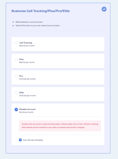 - Select the bottom option, "Business Call Tracking/Plus/Pro/Elite."