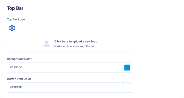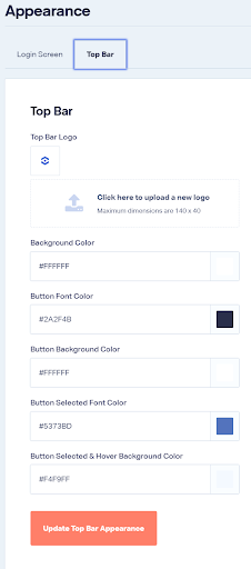 - Upload a Top Bar Logo (appears in the header when logged in).