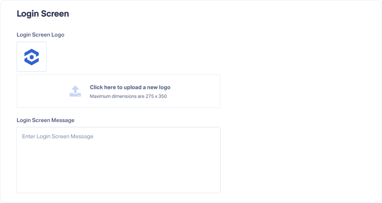 - Upload your Login Screen Logo to display on the login page.