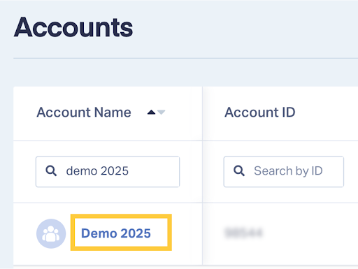 - Find the account and click on the Account name to open it.