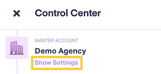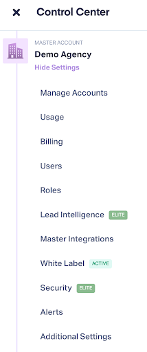 Note: Only Master Account Users can access this level. Account Users won't see Master Account options.