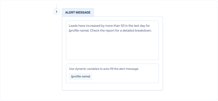 - In the "Alert Message" section, customize the Alert message. Optionally use dynamic variables like {profile name} to auto-fill context.