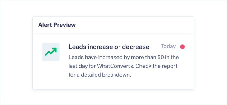 You can use them to get notified when there's a significant increase or decrease in leads, so you can catch spikes, drops, or anomalies early and take action fast (e.g., Get notified if daily leads drop by more than 25%, so you can adjust campaigns before results suffer).
