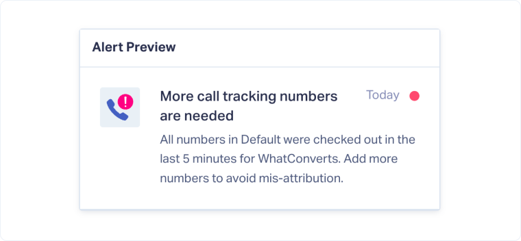When all numbers in a pool are in use, new calls may be missed or misattributed. These alerts notify you before that happens, so you can add more numbers and keep your phone tracking running smoothly.