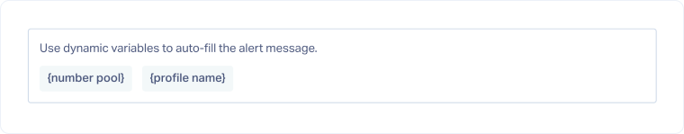 - In the "Alert Message" section, customize the Alert message. Optionally use dynamic variables like {profile name} or {number pool} to auto-fill context.