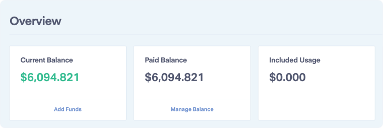 - Paid Balance: Funds you've added manually or through Auto Funding to cover usage and renewals.