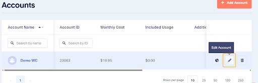- Under the Accounts section, click the Pencil icon next to the account you would like to update the plan for.