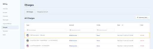 Viewing All Charges lets you see every charge in your Master Account. This includes charges from leads, tracking numbers, and other services.