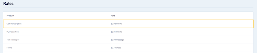 The Rates page lists the rates for leads, tracking numbers, and other services.