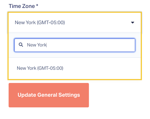 - Under General Settings, in the Time Zone field, choose your preferred time zone.