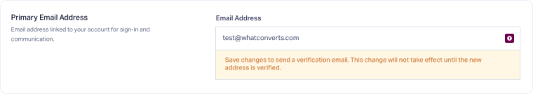 The Primary Email Address is used to sign in to your WhatConverts account and receive email-based 2FA verification codes.