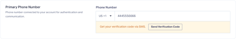 The Primary Phone Number is used to receive 2FA verification codes via text message.