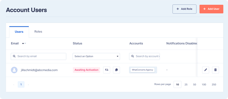 Note: If a user’s email bounces, notifications are disabled automatically. You’ll see the date under Notifications Disabled.
